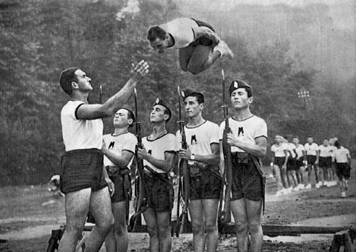 Se i socialisti scontano l’assunto marxista che vede lo sport come parte di quel ‘pacchetto’ che funge da ‘oppio dei popoli’, e quindi lo marchia come ‘vizio da borghesi’, da rifuggere assolutamente, il fascismo ne coglie invece da subito l’intima essenza. Facendo propri i bisogni del popolo, nelle sue varie segmentazioni sociali, finisce per avvicinarsi ai giovani e agli studenti con l’intento di indirizzarli in toto, nella mente, ma anche e soprattutto nel corpo, identificando lo sport come uno dei cavalli di battaglia con cui creare adesione e partecipazione, ma anche lotta e cura dei mali del tempo (alcolismo, tubercolosi, malaria, bassa natalità).